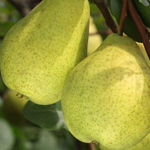 - Грушевидной, правильной формы, одного размера, зелёного, а при полном созревании – жёлто-зелёного, со слабым покровом, цвета, покрыты множеством сильно выраженным больших серых подкожных точек. Кожица не яркая, гладкая, сухая. Мякоть умеренно плотная и крайне сочная, приятная, полумаслянистая, по консистенции – мелкозернистая, белого цвета. Семечки большие, напоминают широкие кувшины, коричневого цвета;