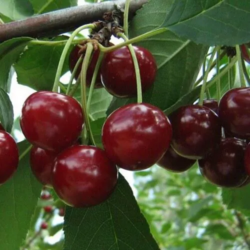 - Округлой или сердцевидной формы, одного размера, бордового цвета. Мякоть приятная и нежная, как и сок, тёмно-красного цвета. Косточка большая, округло-овальная, светло-коричневого цвета, легко извлекается;